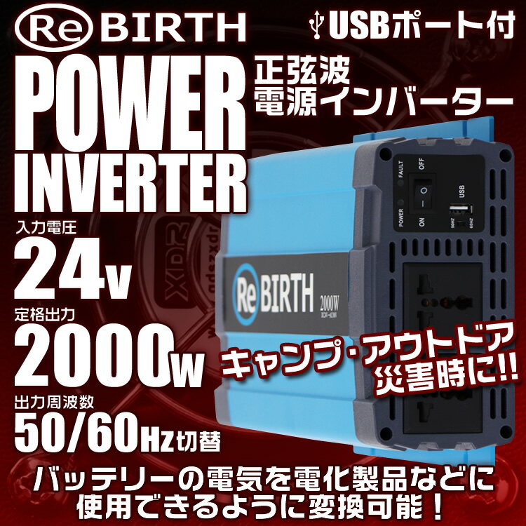 バッテリーの直流24Vを交流100Vに変換!正弦波でより安定した100Vを供給します。